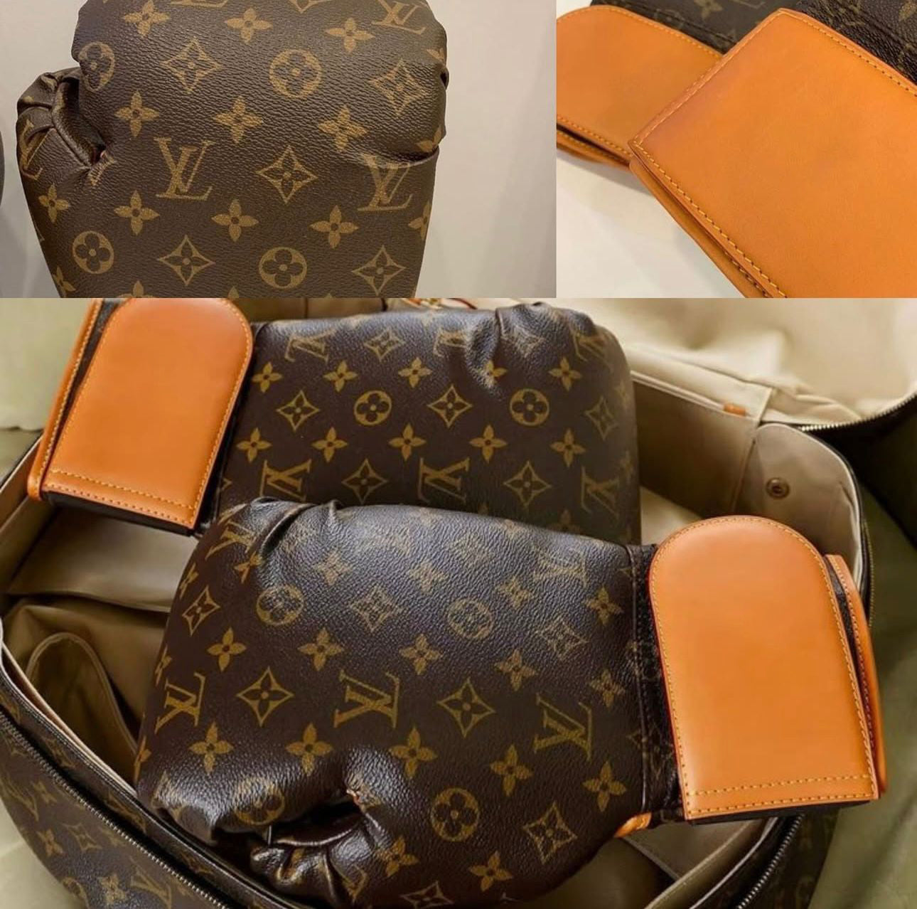 The leather carrier is more than a statement piece—it holds a boxing training mat adorned with LV emblems. To enhance functionality, making the set as practical as it is stylish.